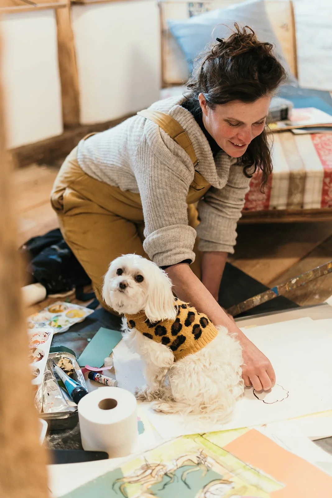 Sophie is the matriarch of Valley Girl Farm, she is a life long artist who has applied art into every aspect of her life and the farm has been one of her greatest and most magical creations. She is an avid lover of the countryside and a passionate conservationist. Sophie was brought up in the bucolic Gloucestershire countryside, which inspired her life long love of nature. She comes from a family of artists, including her mother, the painter Annette de Mestre and her aunt, the painter Rachel Windham. After training at the Byam Shaw and Chelsea Art School in London, she worked for twenty years as a children’s book illustrator and in 1997 was nominated for the Greenaway Medal. During the early years Sophie travelled extensively, living in Venezuela and Los Angeles, where she continued to work and exhibit. In 1994 she moved to the Welsh Borders with her family and for the last decade she has been exhibiting her work in Hay on Wye and London. She has works in private collections in America, Australia, Europe and Venezuela.